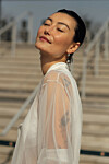 Det norske merket Wilhelmina viste en superchic helhvit look med blondestrømper under Oslo Runway i august.