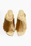 Gullfargede mules med frynseparti fra HM, kr 379 (annonselenke).