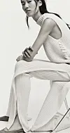 En delikat undertøyskjole skal kombineres med en lang strikket vest og dressbukser, og vi har funnet frem til et par perfekte vinterboots!