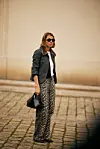 Dette er buksen som igjen kan redde deg ut av kleskriser når man føler at looken blir enten kjedelig eller uinspirerende. Leopardbuksen gir liv til en look bestående av en enkel, hvit longsleeve og grå jakke, og er superfin i kombinasjon med en svart pologenser og blazer over for en chic kontorlook som også er julebordvennlig. Dette er buksen som gir antrekket et instant vavavoom-effekt – noe som er perfekt nå i førjulstiden!