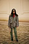 Style gjerne leopardblusen med jordtoner som her, med en mørkegrønn bukse og gjerne en dressbukse som er mer romslig i fasongen slik at det gir en fint kontrast til den feminine blusen.