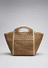 En liten kurveske gir instant bohemske vibber, og denne kan vi bruke både på badet til å ha rullede hvite håndklær i, eller bruke som alt fra jobbveske til sommerveske.